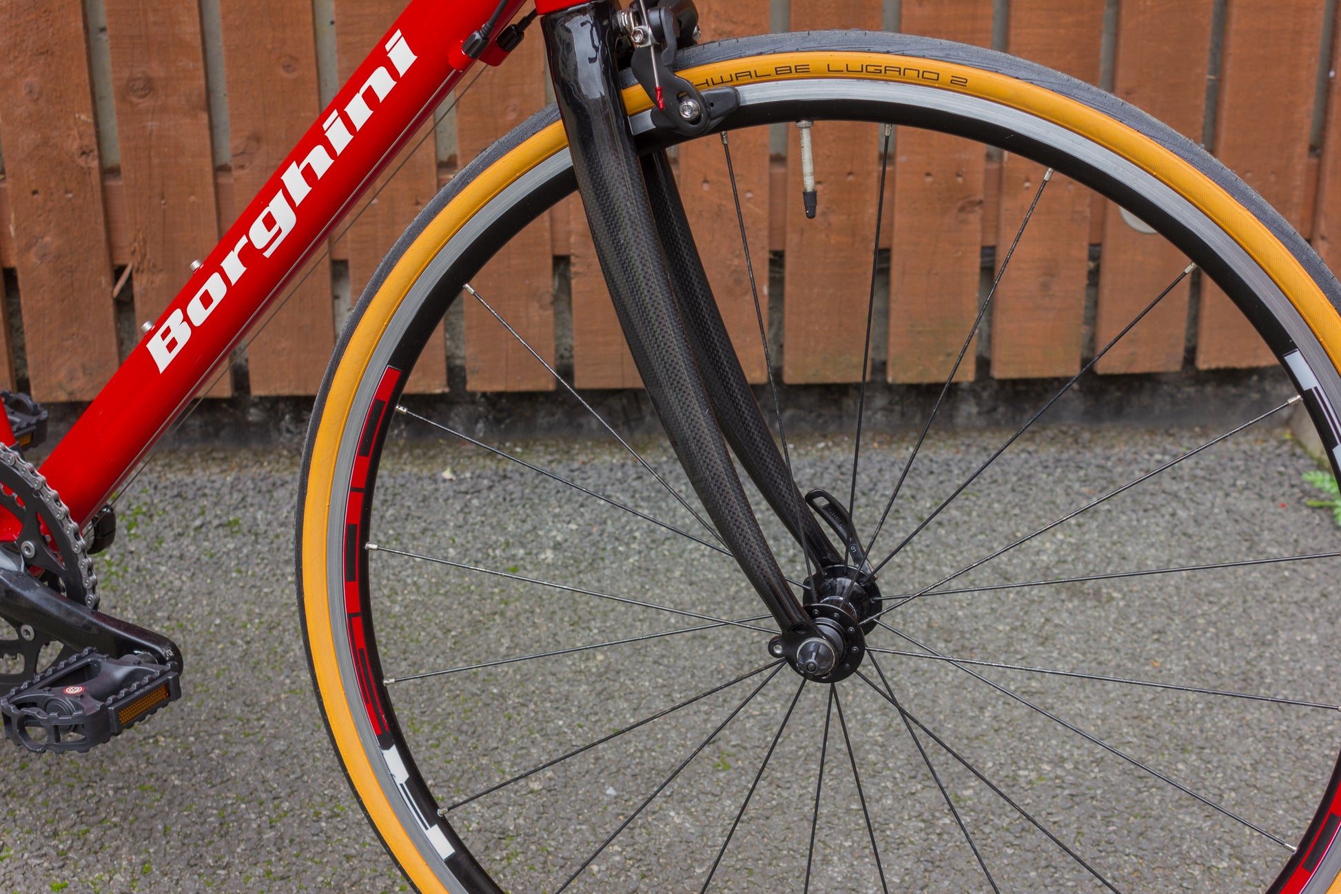 The Borghini Corsa road bike is a sleek and aerodynamic two-wheeler designed for performance enthusiasts. Crafted from lightweight aluminium alloy, its frame ensures agility and speed on the road. With precision-engineered components, seamless gear shifts, and responsive brakes, the Borghini offers a thrilling riding experience. Its striking design, with beautiful vibrant red colour palette and a streamlined silhouette, not only turns heads but also reflects its commitment to both form and function. On the topic of function we have also installed SLIME sealant within the innertubes which will plug up any minor-moderate punctures as you ride, ensuring you’re never left on the roadside waiting for rescue. Whether you’re tackling steep climbs or cruising on straightaways, this Borghini Corsa road bike delivers a harmonious blend of style and performance for cyclists.